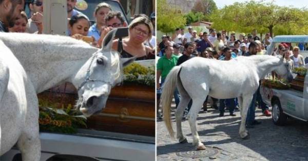 صور مؤثرة لحصان يبكي وفاة صاحبه ويُشيعه إلى القبر