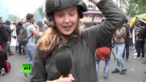 “فيديو”: مراسلة “روسيا اليوم” تتعرض لصفعة قوية من متظاهر في باريس