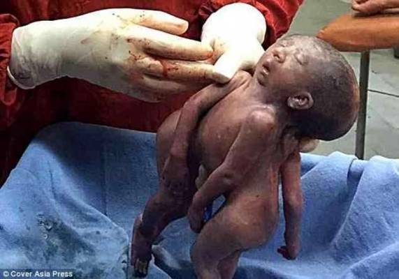 شاهد.. ولادة توأم سيامي بوجه واحد وجسمين!