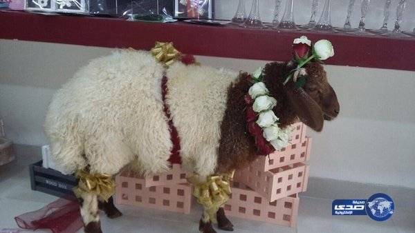 “رومانسي” يزين خروفاً بالورود ويهديه لزوجته