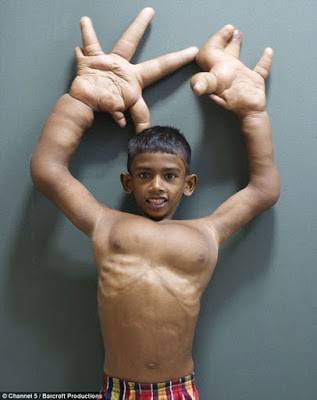 بالصور والفيديو : طرد طفل هندي من مدرسته بسبب حجم يديه العملاقتين!!