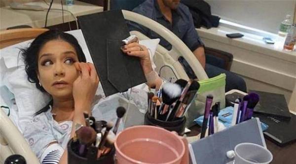 بالصور..تضع المكياج أثناء الولادة بمساعدة زوجها