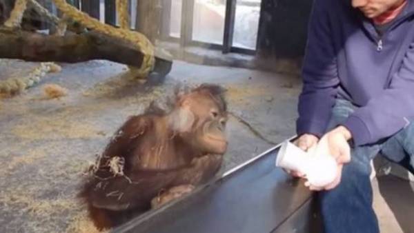 قردة تقع على الأرض متأثرة بالضحك (فيديو)