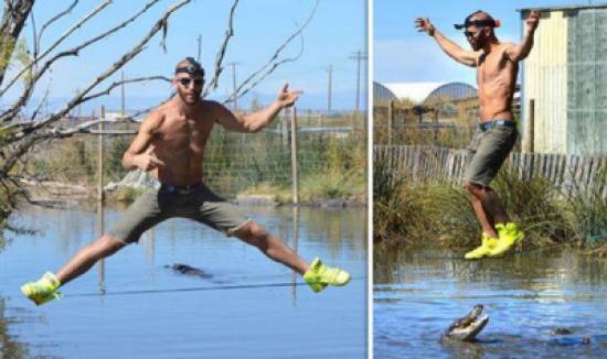 بالصور : مغامراً أمريكياً يمشي على الحبل فوق نهر يعج بالتماسيح الجائعة