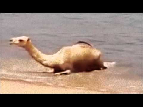 جمل يدخل الى بحر العقبة هربا من الحرارة فيديو