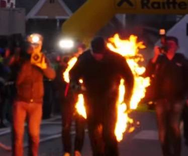 بالفيديو.. ركض 645 قدماً والنار تلتهمه