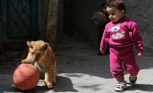 فلسطيني يربي شبلين في منزله في غزة (صور)