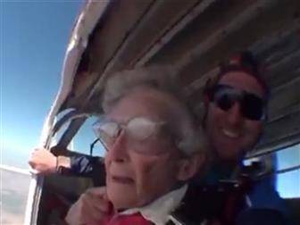 عجوز تحتفل بعيد ميلادها الـ 100 بقفزة مظلة