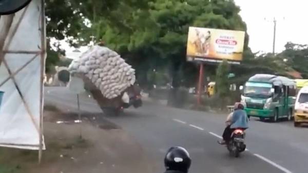 بالفيديو.. شاحنة تسقط والجمهور يضحك