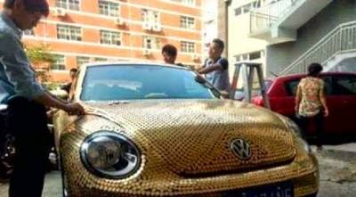 صينية تغطي سيارتها بـ10 آلاف عملة نقدية