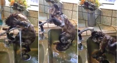 قرد يستحم مثل البشر .. فيديو