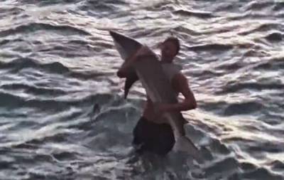 لا يصدق : شاب يصطاد سمكة قرش بيده .. فيديو