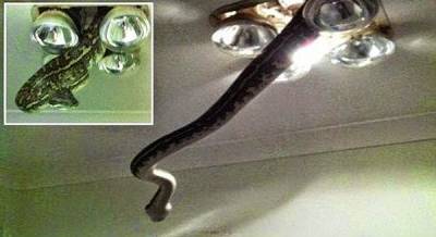 صور: ثعبان يتدلى من السقف في مفاجأة مرعبة لرجل استرالي