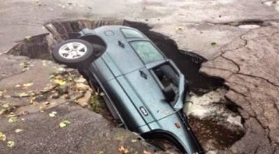 صورة .. كيف نجا السائق بأعجوبة من هذه الحفرة العملاقة التي ابتلعته؟