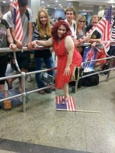 فنانة تدعس العلم الأمريكى بمطار القاهره وسط ضحك الأمريكان