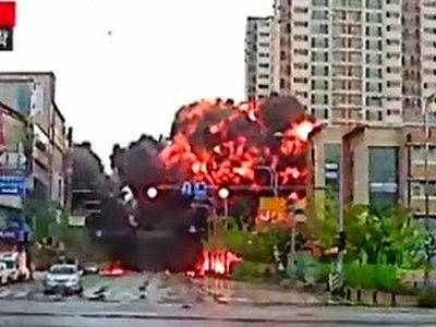 لحظة سقوط مروحية وسط مبان سكنية .. فيديو
