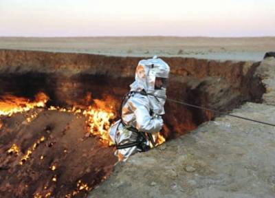 بالفيديو والصور.. أول إنسان يقتحم «بوابة الجحيم»