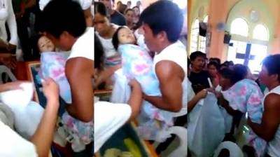 فيديو.. استيقاظ طفلة فليبينة خلال مراسم جنازتها