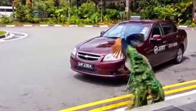 بالفيديو.. طاووس غاضب يهاجم سيارة