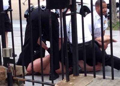 لم يسمح له بالدخول .. فتعرى امام البيت الابيض