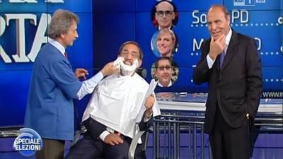 بالفيديو .. سياسي إيطالي يفي بوعده ويحلق لحيته على الهواء مباشرة