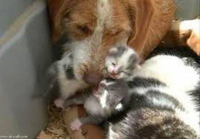 "كلبة" تفاجئ صاحبها وتلد ثلاث قطط في ظاهرة تعد الأغرب في العالم !!!