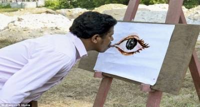 بالفيديو.. فنان موهوب يرسم بـ«لسانه»