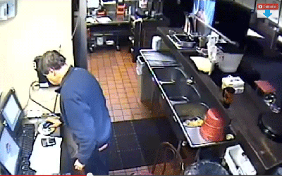 بالفيديو.. لقطة صادمة لمدير مطعم بيتزا وهو يتبول
