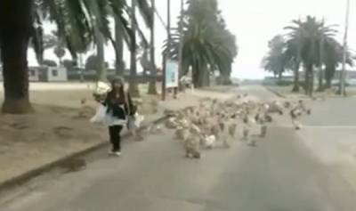شاهد بالفيديو .. "هجوم" أرانب جائعة على سيدة