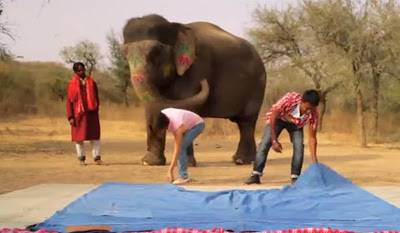 بالفيديو.. فيل يتحول إلى "عارضة أزياء" مرتدياً الجينز