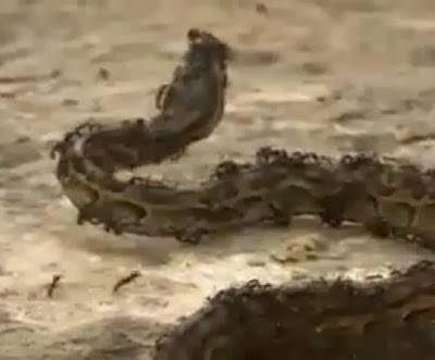 مقطع فيديو مذهل لهجوم جماعي لـ "النمل" على "أفعى عملاقة" وقتلها !