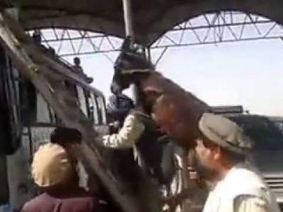 رجل يحمل حمار على ظهره و يصعد به فوق اتوبيس