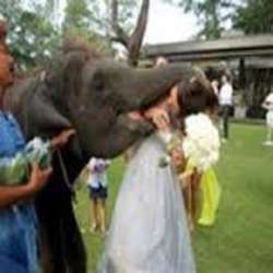 بالفيديو…فيل يقتحم عرساً ويقبل العروس