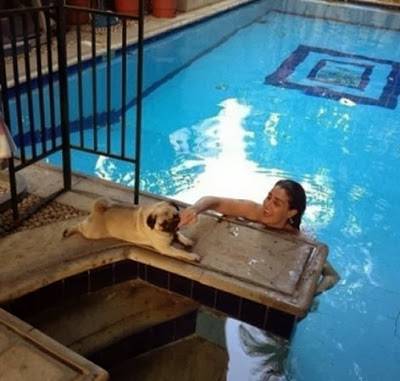 صورة غادة عبد الرازق مع كلبها في حمام السباحة .. تثير غضب الجمهور