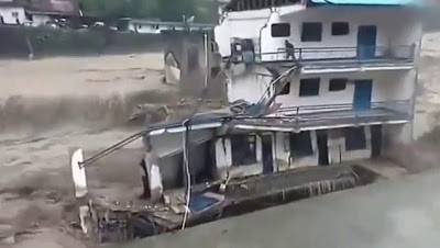 بالفيديو.. لحظات عصيبة قبل الموت لرجل انهار منزله في الفيضانات