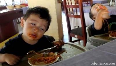 شاهد: أطرف توأم يتحديان النعاس لأجل ”المعكرونة”