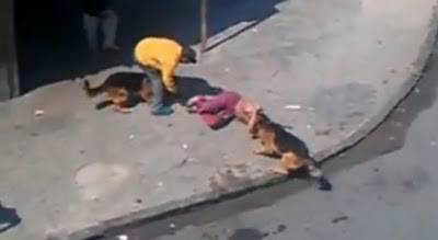 كلبان يفترسان شخص في واضح النهار بالدار البيضاء .. فيديو صادم
