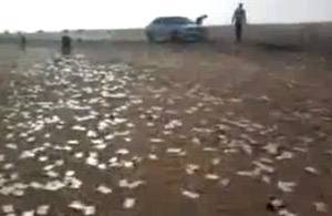 بالفيديو.. أموال هائلة تتطاير بعد انقلاب سيارة بنك