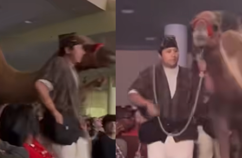 فيديو صادم يظهر جملا يركل امرأة في وجهها ويفقدها وعيها خلال احتفال بعيد الميلاد (فيديو)