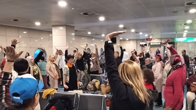 تأخر رحلة جوية يحوّل مطار القاهرة إلى ساحة تمارين صينية (فيديو)