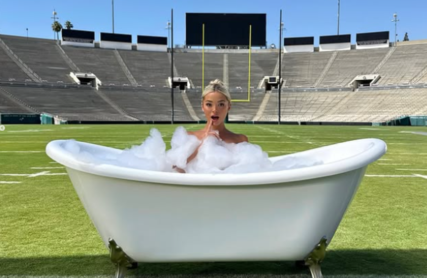 نجمة عالمية تظهر عارية بملعب أمريكي في إعلان لشركة مراهنات رياضية