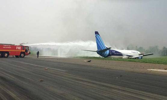 طائرة بوينغ تنزلق من مدرج مطار