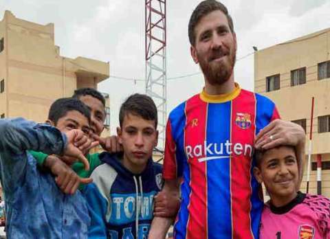 مصري يشبه ميسي يثير حماس أطفال أيتام يعشقون كرة القدم