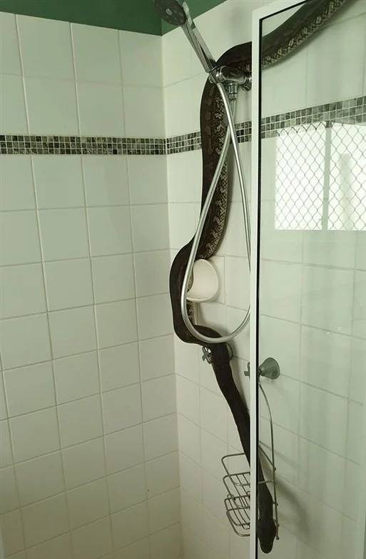بالصور.. ثعبان ضخم يظهر لإمرأة فجأة أثناء الإستحمام