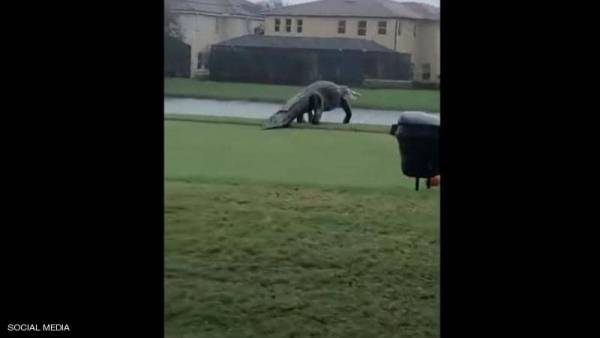 فيديو.. تمساح عملاق يقتحم ملعبا للغولف