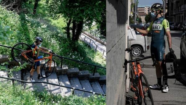 بالصور.. دراج إيطالي محترف يمارس خدمة التوصيل في زمن كورونا