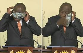 موقف محرج لرئيس جنوب أفريقيا أثناء ارتدائه الكمامة