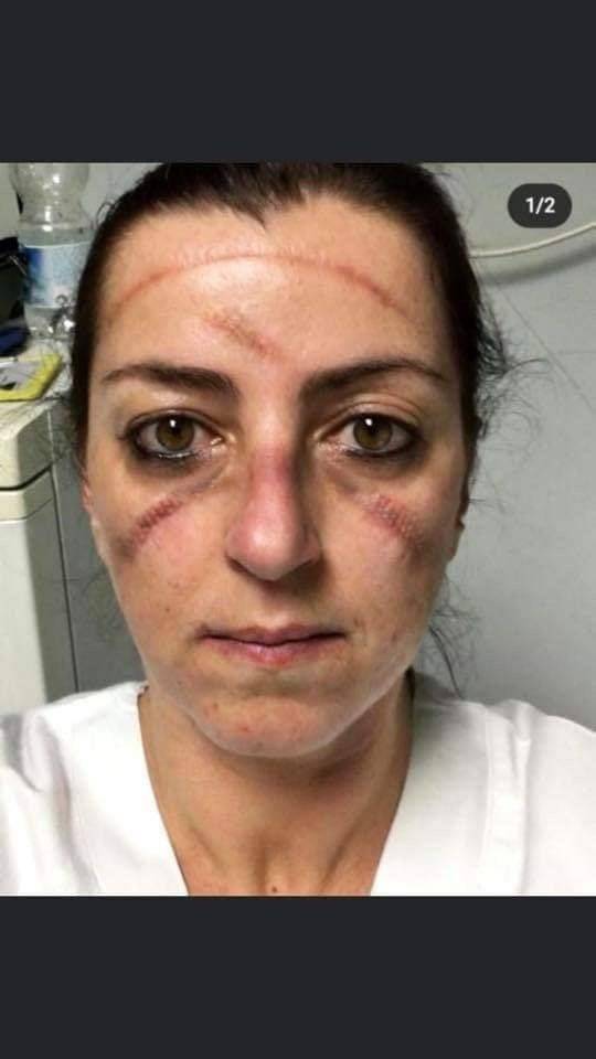 هذا ما يفعله ارتداء الملابس الواقية في وجوه الممرضين الإيطاليين. التعب ، القلق ، الخوف و علامات ارتداء القناع تبدو اشبه بالجروح ..
