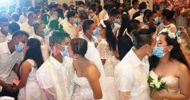 صور وفيديو.. قبلات بالكمامات فى حفل زفاف جماعى بالفلبين