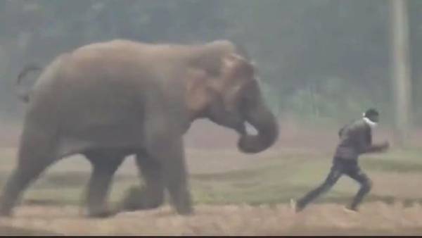 سائح كاد يلقى حتفه تحت أقدام فيل أثناء محاولة التقاط سيلفي معه.. «فيديو»